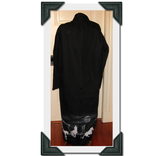 The back of Black Duster Size Large-Made in Texas by Dion's of Texas-very unique! $200.00 + Shipping