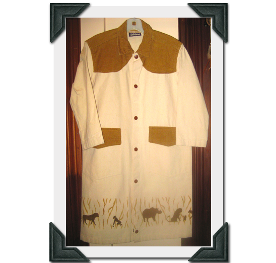 Adult's Canvas Duster with Corduroy Yokes & African Animal Scene Airbrush-Size Medium $55.00 + Shipping-by Dion's of Texas