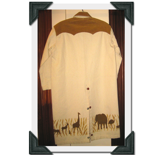 Back of Adult's Canvas Duster with Corduroy Yokes & African Animal Scene Airbrush-Size Medium $55.00 + Shipping-by Dion's of Texas