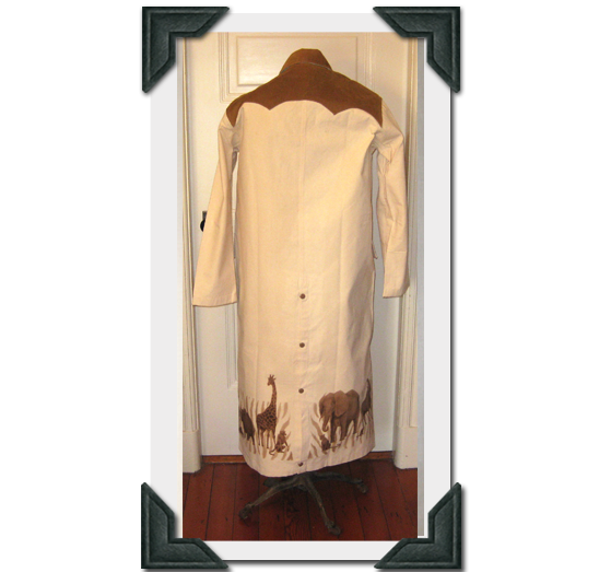 Back of Adult's Canvas Duster with Corduroy Yokes & African Animal Scene Airbrush-Size Medium $55.00 + Shipping-by Dion's of Texas